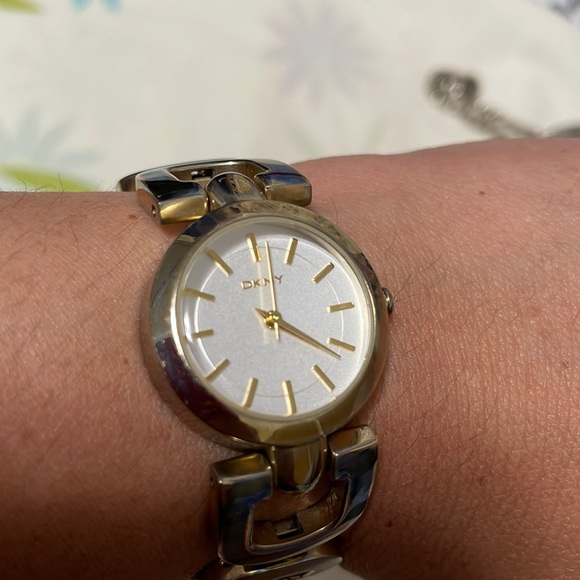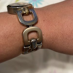 needs battery As Is 2 toned , some faded color on bracelet No extra links, fits small wrist