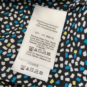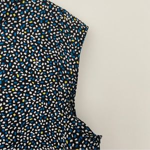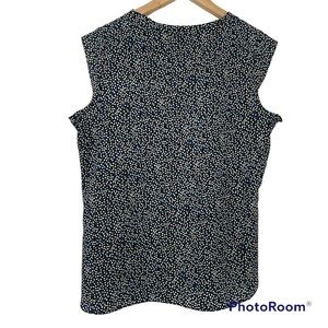 DKNY BLACK/BLUE/YELLOW/WHITE GEOMETRIC PRINT SLEEVELESS TOP/BLOUSE, MEDIUM