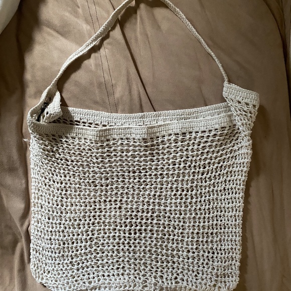 DKNY Beige Mesh 100% Cotton Crochet Tote Bag