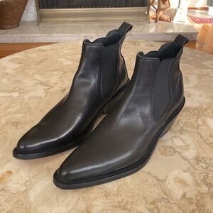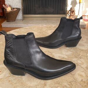 DKNY Black Leather Pointed Toe Cuban Heel Chelsea Boots Rare