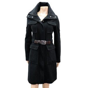 DKNY Black Military Belted Wool Trench Coat Size 6