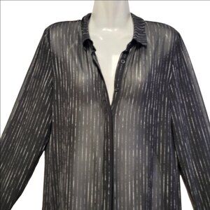 DKNY Black Pinstripe Tunic Long Thin Sheer Cardigan Coat Cover Up