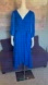 This stunning blue sress features a flattering wrap design with a V-neckline and elegant bishop sleeves. Perfect for a wedding guest or cocktail event, the dress offers a sophisticated silhouette with its pleated wrap style and tie belt for added definition.