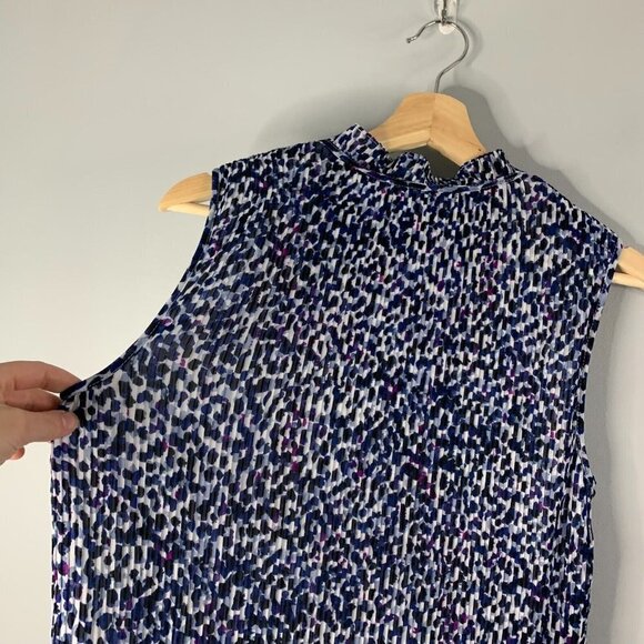 Stylish DKNY mini dress. Features a blue and white pattern. Sleeveless design with a relaxed fit.
