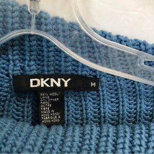 DKNY Chucky Wool Ribbed Knit Sweater Side Mock Neck Soft Cozy Oversized Blue M
