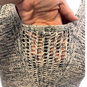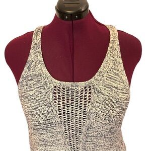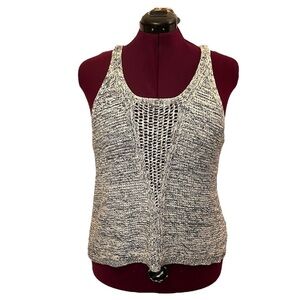 Is it just me or are knit tanks everything? I love the racer back and open knit in the chest area on this one. The white and blue space dye knit gives it a bit of a denim look. 100% cotton, chunky knit.