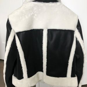 White faux fur shearling and faux suede jacket