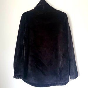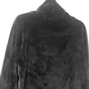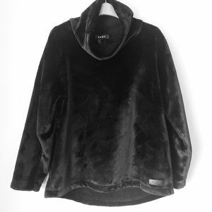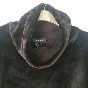 DKNY Cozy Black Velour Sweater Boxy Cowl Neck Muffle Pockets Size S Loose Fit