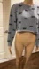 DKNY - Short Gray Oversized Sweater with Black Logo Print, Size US M. This trendy sweater features a sleek gray hue and bold black logo print, offering a stylish and modern look. The oversized fit and short length add a unique touch, making it perfect for pairing with high-waisted jeans or skirts.