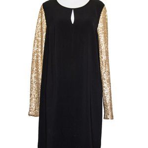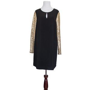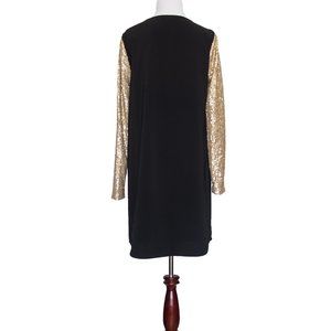 DKNY Dress Black Gold Sequins Long Sleeve Sheath Cocktail Sz 4 Small 465$