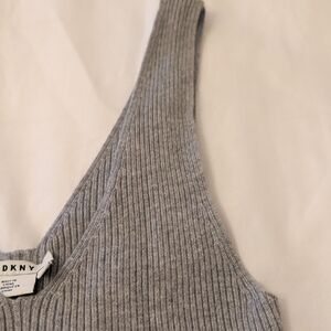 Chic gray ribbed tank top by DKNY. Sleek and versatile design.