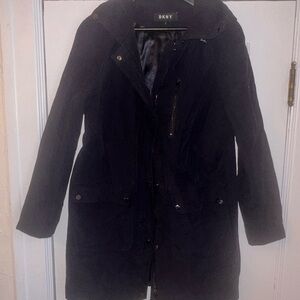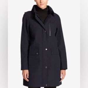 DKNY Hooded Water-Resistant Raincoat Women’s Medium Navy