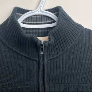DKNY Jeans Men’s Black Ribbed 1/4 Zip Mock Neck Black Sweater XL 100% Cotton
