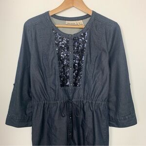 DKNY Jeans Denim Dress Sequin Embellished Drawstring Waist Sz S