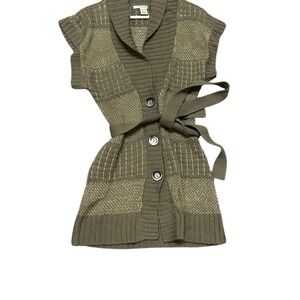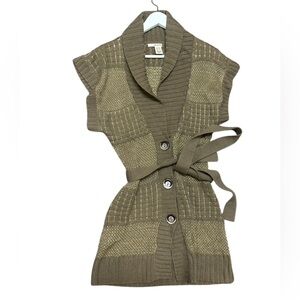 DKNY Jeans vintage XS Y2K short sleeved wool/poly blend long belted cardigan