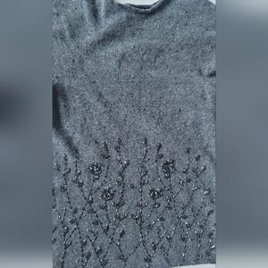 Elegant gray top with intricate embellishments, perfect for any occasion.