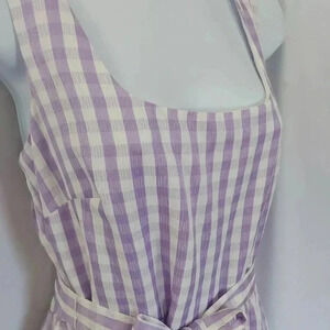This beautiful DKNY dress features a lavender and white check pattern, a sleeveless design with a scoop neckline and a fit & flare style. It's perfect for any occasion! The knee-length dress is made of high-quality polyester and comes with tags attached for authenticity.