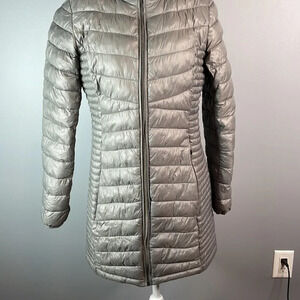 DKNY Lightweight Puffer Jacket Packable 3/4 Length Hooded Poly Fill Grey Size S