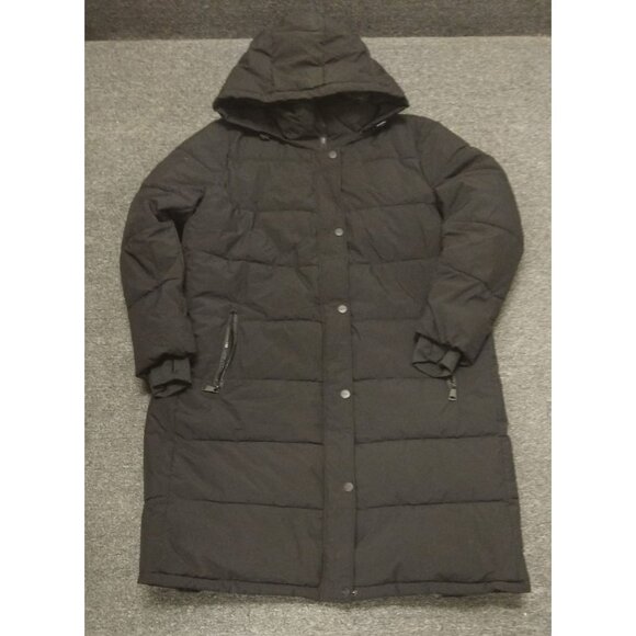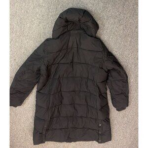 DKNY Long Puffer Coat Womens XXL Black Quilted Hooded Winter Jacket Sorona Fill