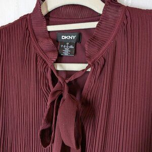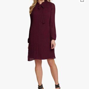DKNY Long Sleeve Tie Neck Pleated Shift Dress | US 4