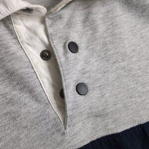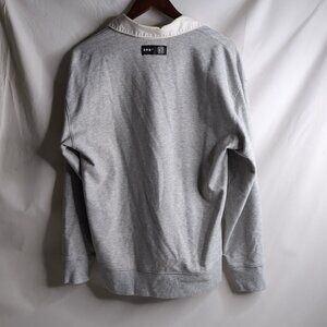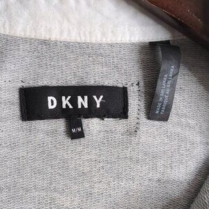DKNY Men's Light Grey Snap Button Polo Navy Stripe Embroidery Spellout, Size Med