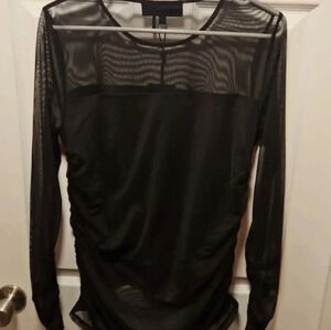 DKNY Mesh Sheer Top Gathered Long Sleeve Lined Ruched Black size L
