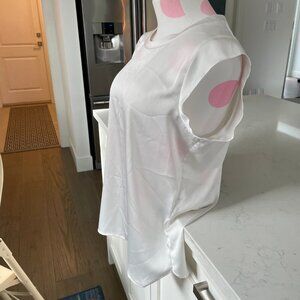 DKNY Neutral Scoop Neck Cap Sleeve Polyester Top White Sz S