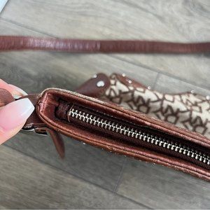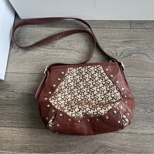 DKNY Logo Print Leather Crossbody Bag with Stud