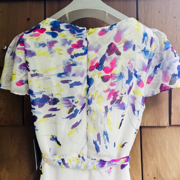 DKNY Printed Flutter Sleeve Faux Wrap Midi High - Low Chiffon Dress Size 14 $134