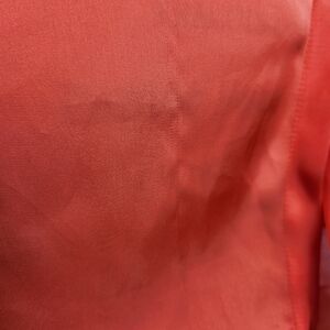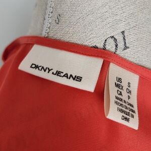Soft Coral Red Sateen flowy Sleeveless Blouse with Ruffle Cap Side Detail, by DKNY Jeans.