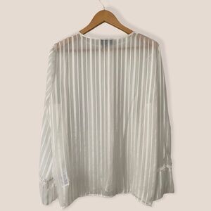 Lightweight and sheer blouse with bell sleeves and a relaxed fit. Great pre loved condition. 100% polyester. Size XL.