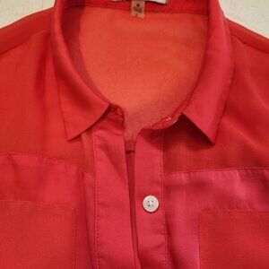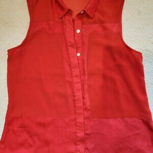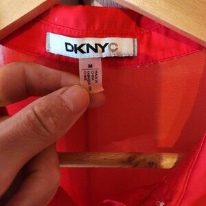 Euc blouse from dkny with panel to cover buttons and two chiffon panels decorating the front. Very flattering and versatile for dressing up or down.
