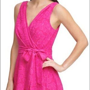 DKNY Sleeveless Double-V Faux Wrap Belted Evening Cocktail Dress S 6 fuchsia