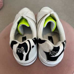 Pre-loved with signs of use! These sneakers are super cool, they have a lime green tongue, and zebra print detailing on the back. They are heavily discounted to accommodate the signs of wear as pictured. Hoping someone will give these babies a second chance!