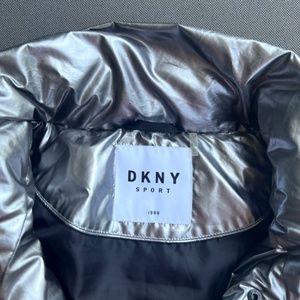 Metallic silver puffer jacket from DKNY in a size small. Like new condition! Only wore it 3 times.