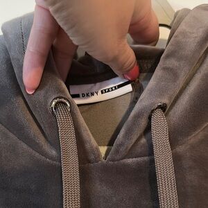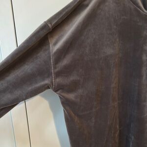 Cozy brown velvet hoodie with drawstrings. Perfect for casual wear. This velour is so luxurious and soft. From smoke free, pet friendly, environment ✨