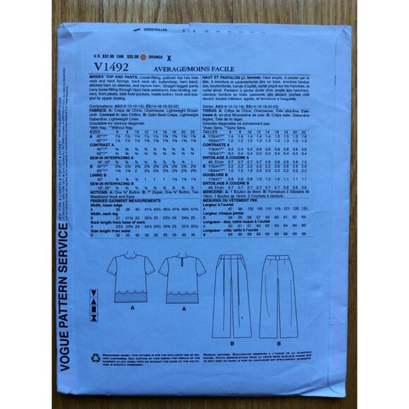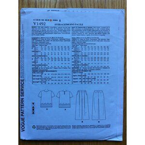 DKNY Top and Cropped Pants Pattern Size 14 - 22 Vogue American Designer 1492