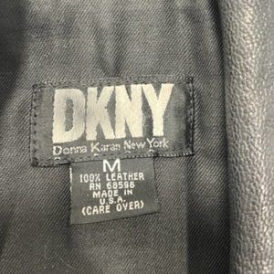 This is a beautiful soft heavy, thick, excellent quality leather biker vest by Donna Karan. It is hard to find this type of quality in a leather vest. Vintage from the 80s. The vest is in excellent like new condition and has never been worn. All the many pockets having working zippers and snaps to hold all your goodies. The two buttons on each lapel read “Donna Karan Circa 1988” with “DKNY” in the middle. There are a few minor tiny scratches on the buckle but are only noticeable vert close up and in bright light and are hard to see otherwise (as seen in the buckle photo). Inside is fully lined.