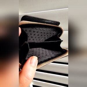 DKNY Wallet Beige Tan Leather Coin Zipper Black