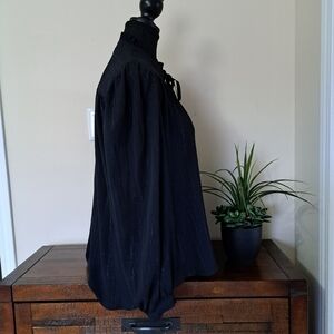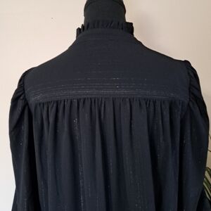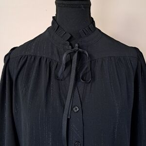 DKNY Women's Lurex Blouse Black Long Sleeve Ruffle Top Medium NWOT