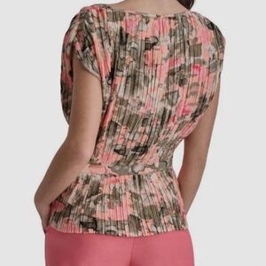 DKNY Women's Pink Printed Crewneck Pleated Peplum Fitted Blouse Top Size L, XL