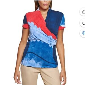 DKNY Women's Printed Wrap Front Top sz XXL