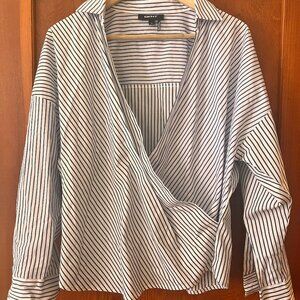DKNY two-toned striped wrap blouse. size XS but fits upto a size M In excellent unworn condition.
