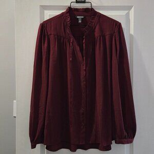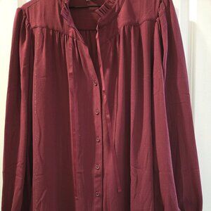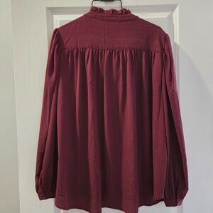 NWOT Size XL Full button down Button sleeves Top ties Maroon with sparkles! Nice and Flowy Smoke and pet free