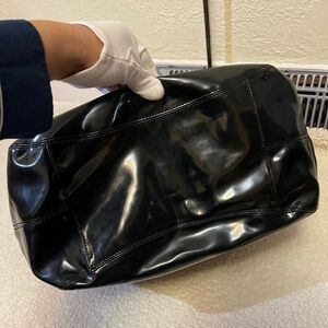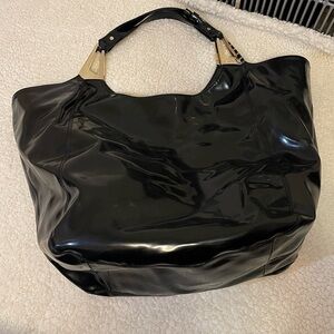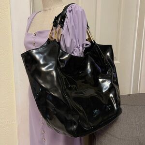 DKNY patent leather large hobo tote bag in black and silver hardware