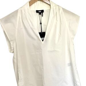 DKNY, new with tags, shawl collar deep V neck tunic. Short sleeve, white, fits oversize.