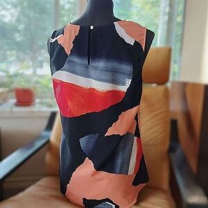 DKNY sheer sleeveless multicolour abstract pattern sleeveless blouse size M