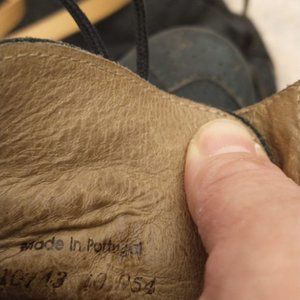 Super stylish, comfortable ankle boots. Black laces and inner zip up booties. Leather, Made in Portugal. Some wear on heels and boots, but still a lot of life in these lovely boots.