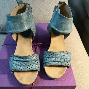 Funky and comfy slightly worn .. heels in excellent condition! Teal colour (bluish) excellent leather size 40 made in Portugal!