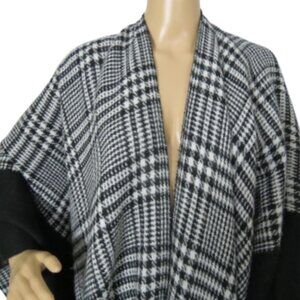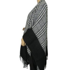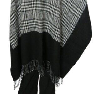 Wrap yourself in style and comfort with the DKR & Co. Studio Black and White Plaid Poncho! This chic poncho features a stylish black and white plaid design that will elevate any outfit effortlessly. Made from soft and cozy fabric, it offers a luxurious feel while keeping you warm and snug. The fringe edges and enlarged black border add a touch of style and flair to your look. Versatile to wear with a range of ensembles, this poncho is a must-have fashion statement for any wardrobe.